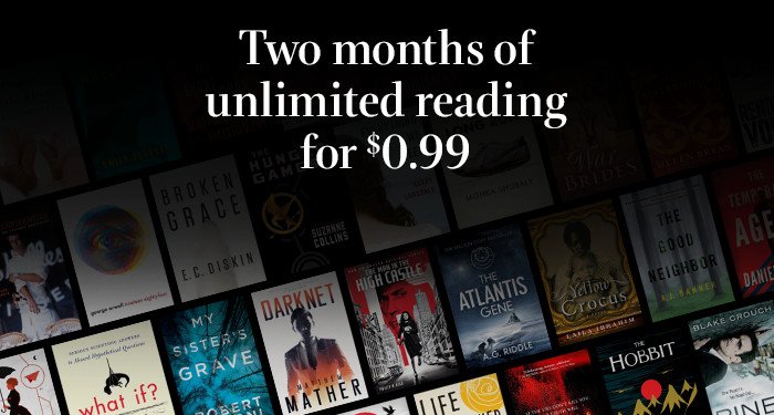 Right now, Amazon is running a  special trial offer for Kindle Unlimited on the Kindle Books main page. The offer allows you to try the service for two months for only 99 cents.